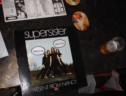 Stickered Supersister LP cover at De Kreun in Kortrijk.
