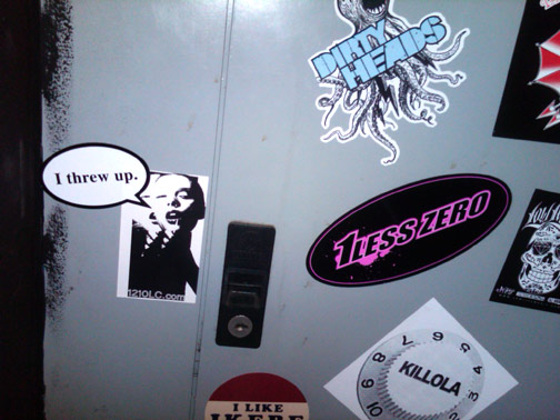 Stickered power box backstage at The Grove in Anaheim, CA.