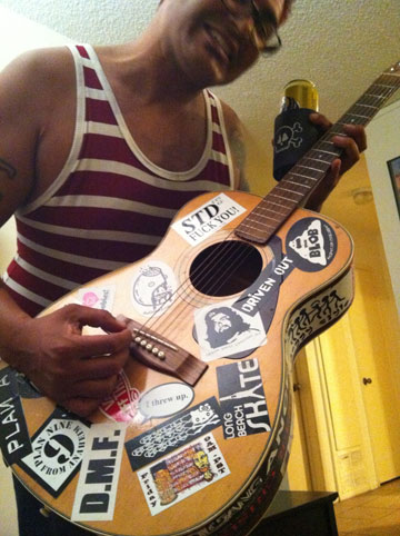 Stickered guitar owned by Jeremy - Guitarist for Yeastie Boys and The Blob, LBC.