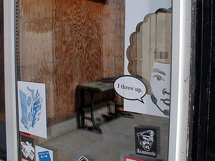 Altered stickered window at the Acamonchi/Havok art studio.