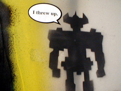 Altered stickered wall in the Acamonchi/Havok art studio.