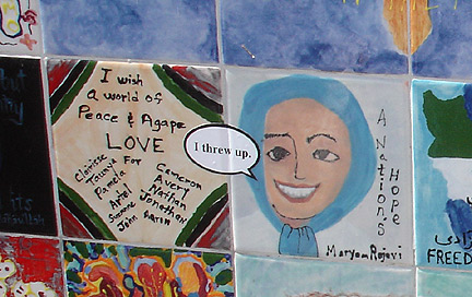 Another view of the stickered tile wall.