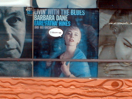 Altered window display for Record Surplus store (a must-visit for any record collectors).