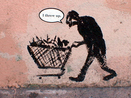 Photo taken in a highly-decorated alley located in the Mission District. This alley was well-known and featured an abundance of interesting artwork. Sadly, it has since been partially demolished for new growth.