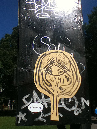 Stickered grafitti.