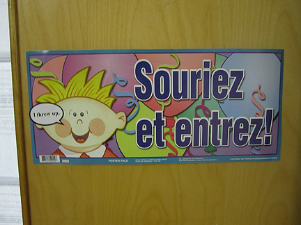 Stickered door sign.