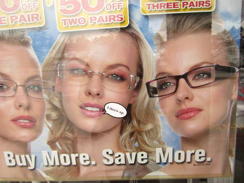 Stickered eye wear advert.