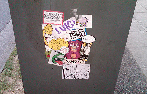 Stickers on the street.