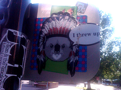 Stickered street sign