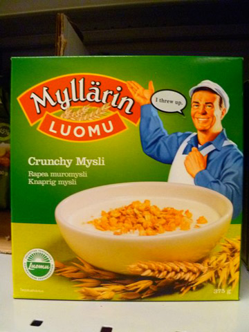 Stickered box of oatmeal in supermarket. It is reported that this box stayed on the shelf like this for over a week.