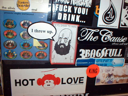 Stickered door at record store in Tijuana.