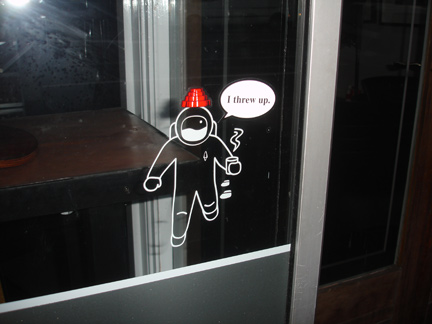 Stickered coffee shop window.