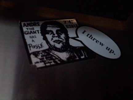 Altered Andre The Giant sticker in an elevator.