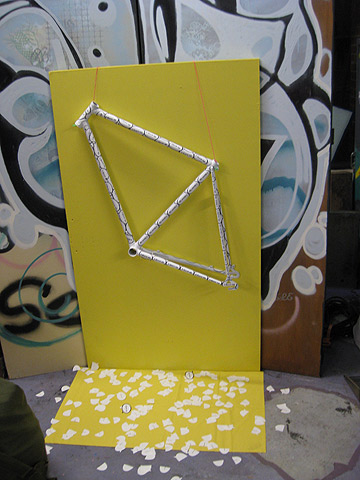 "I threw up." custom bike frame on display at the Derailed Art Show, a benefit for 1304 Bikes in Raleigh, NC. November 2009