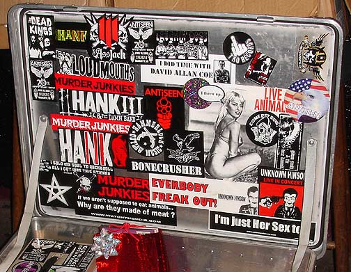 "I threw up" sticker on ANTiSEEN's merchandise box at Tremont Music Hall. Charlotte, NC - September 2008