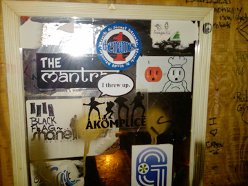 Stickered mirror... in the green room at The Pour House. Raleigh, NC February 2010