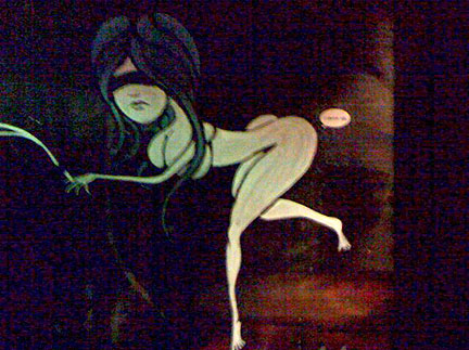 Stickered wall mural inside a downtown bar.
