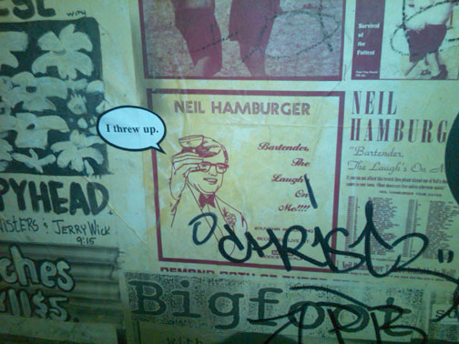 Stickered "Neil Hamburger" flyer on wall at record store. Columbus, OH June 2011 Submitted by M. Pilmer