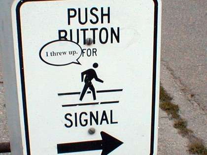 Altered crosswalk sign.