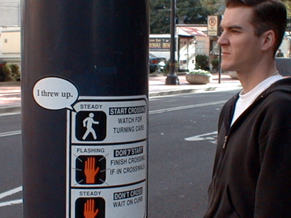 Altered crosswalk sign.