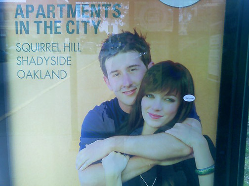 Altered bus stop ad.