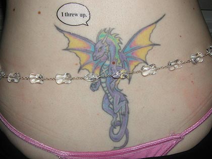 Altered lower back dragon tattoo. (Model: Celeste Waid)