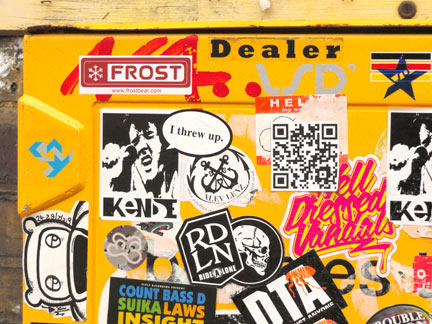 Close-up view of stickered power box.