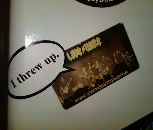 Stickered refridgerator backstage at The State Theatre.