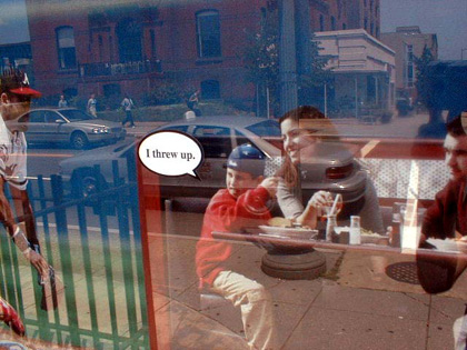 Altered bus stop shelter advertisement