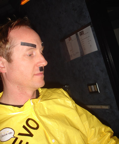 Josh Freese of DEVO wears an "I threw up." sticker backstage at the 9:30 Club. Washington DC Nov. 2009 Submitted by Michael Pilmer