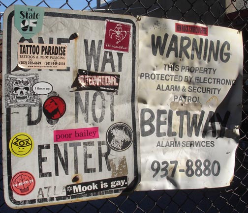 Stickered sign in the alley behind the 9:30 Club. Washington DC Nov. 2009 Submitted by Michael Pilmer