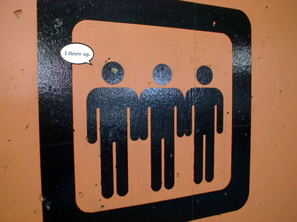 Altered sign in parking deck of hotel in Seattle.